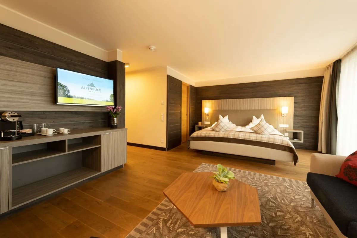 Eingebettet in die idyllische Landschaft des Naturparks Südschwarzwald, bietet das Bio- & Wellnesshotel Alpenblick einen beeindruckenden Blick auf die Schweizer Alpen. Das originale Schwarzwaldhaus mit modernem Suitenhaus schafft eine einladende Atmosphäre, in der Tradition und zeitgemäßer Komfort harmonisch verschmelzen.